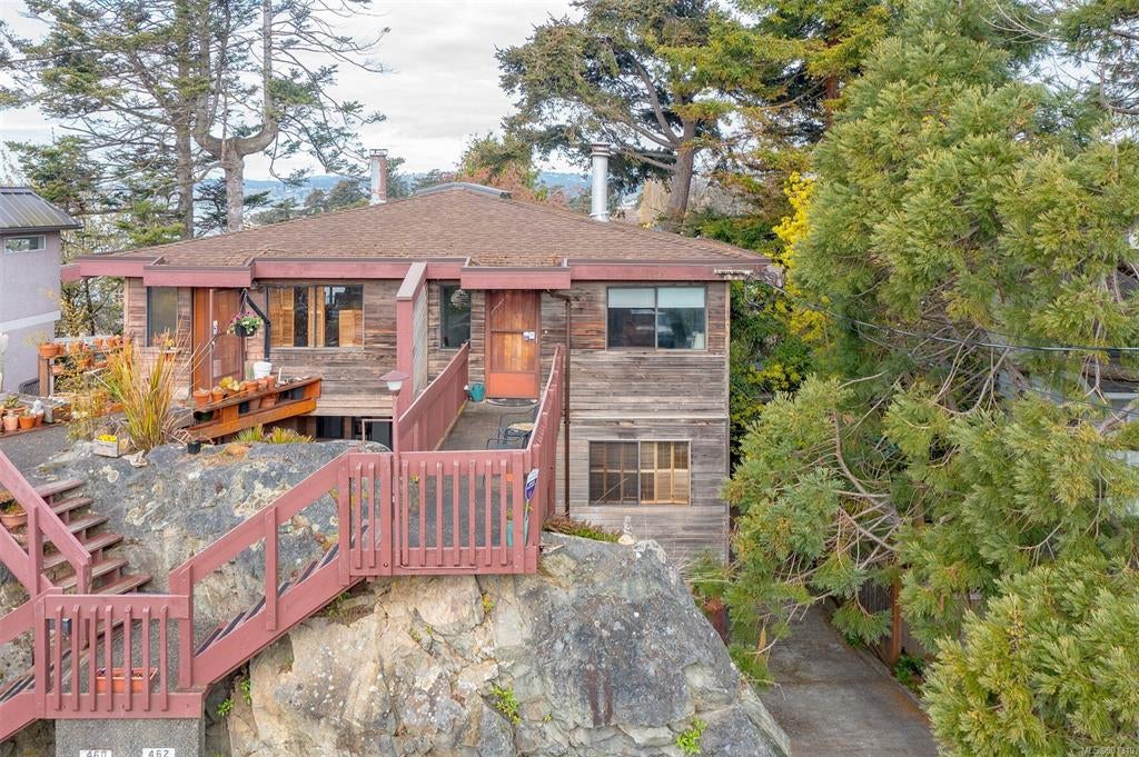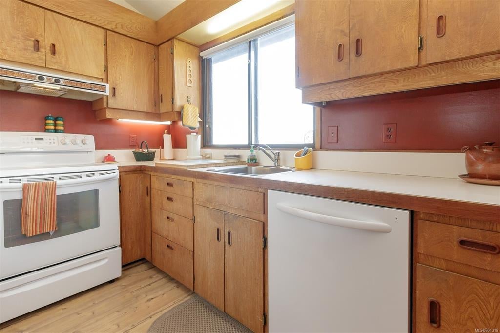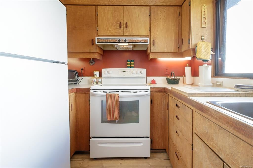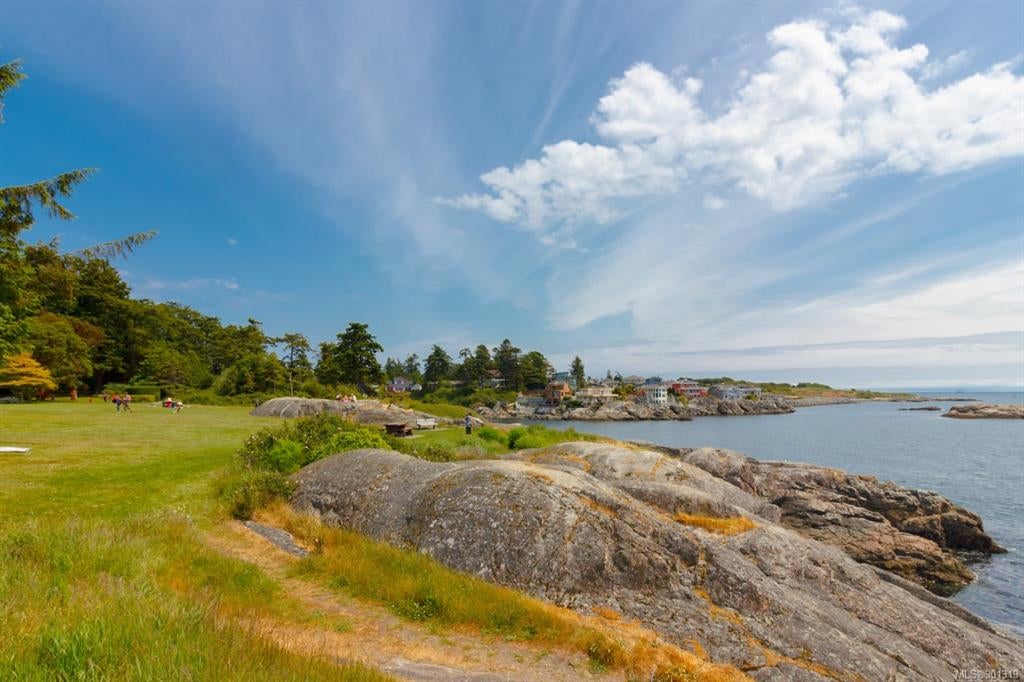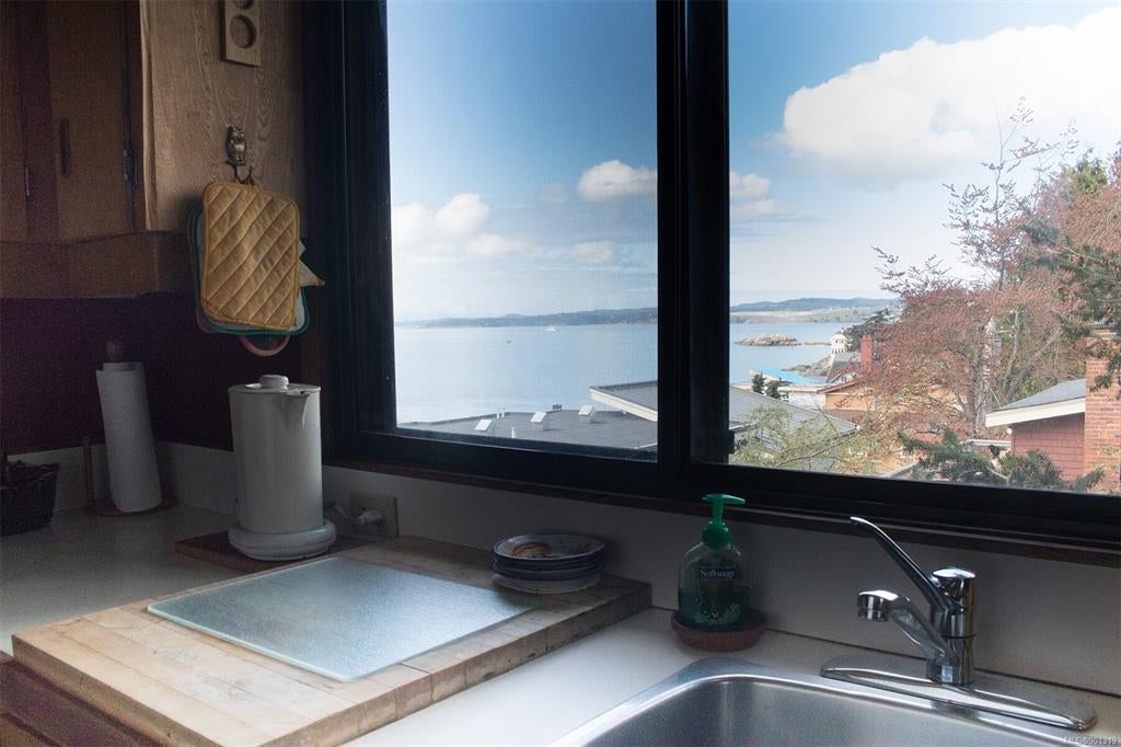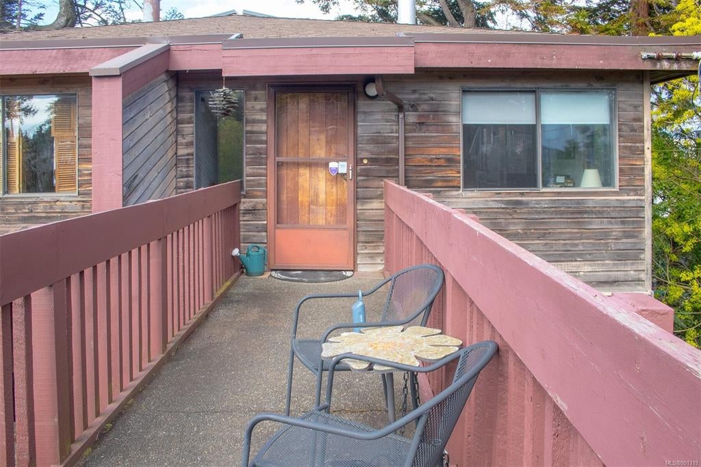 Fantastic ?Condo alternative, no strata fees, Ocean view from the kitchen window? and sunroom. ?This West Coast Side by side duplex featuring Skylights, vaulted ceiling and cosy fireplace in the living room. Very private high on a rock and on a dead end street. Bring your decorating ideas? to this 2 bed, 2 bath 1/2 duplex. Located on a quiet dead end street?,? walking distance to Saxe Point park, ocean?, ?Amenities? and bus routes?. Easy care lot, ?South West back yard ideal for a garden, ?covered carport, extra parking space and separate storage.