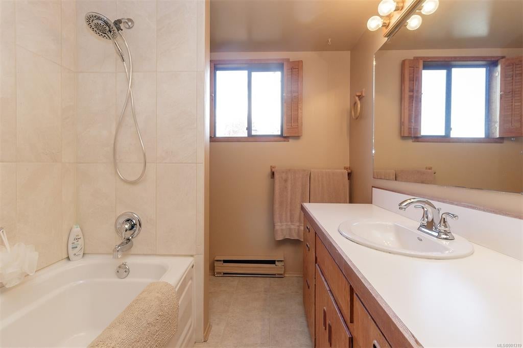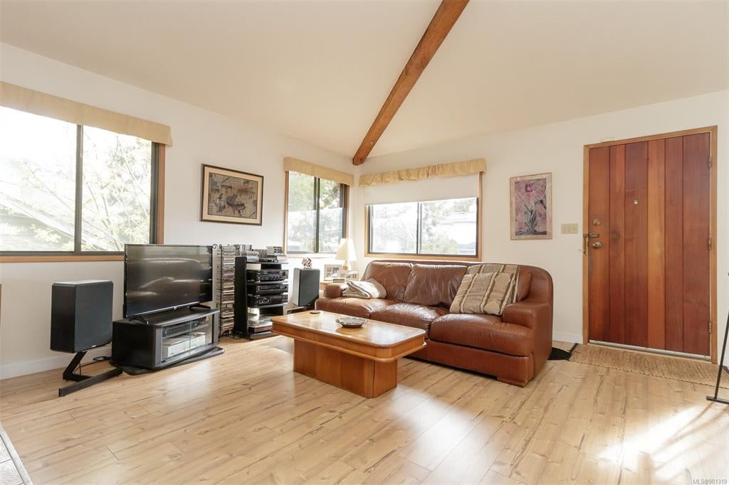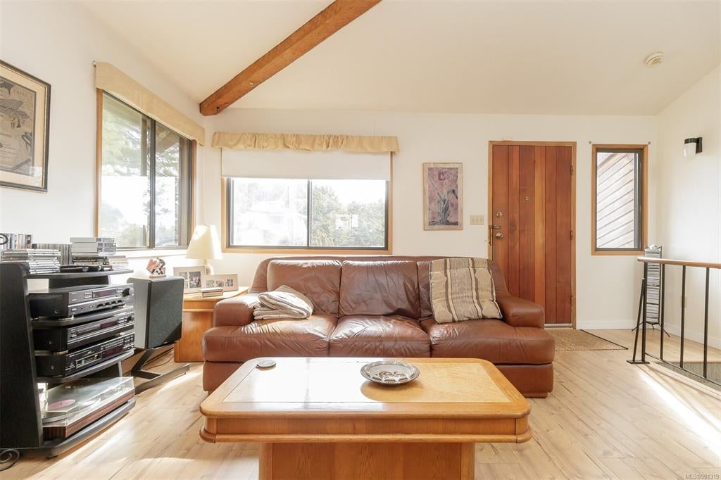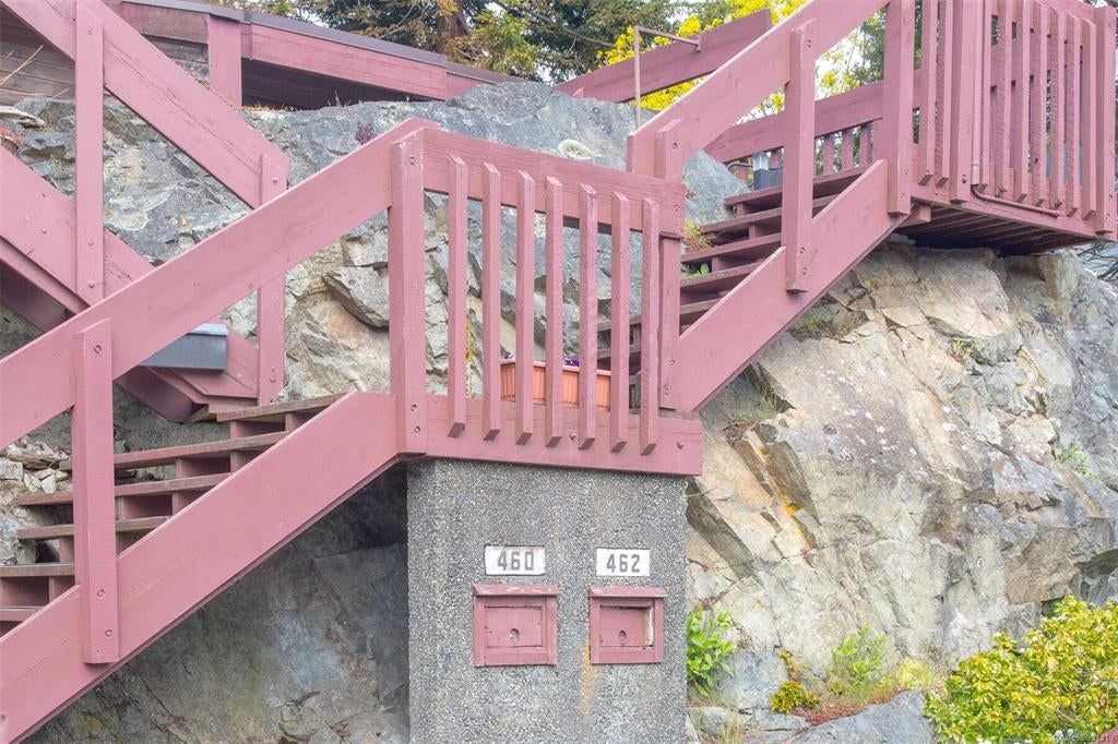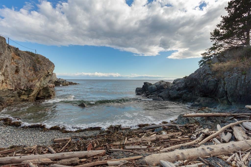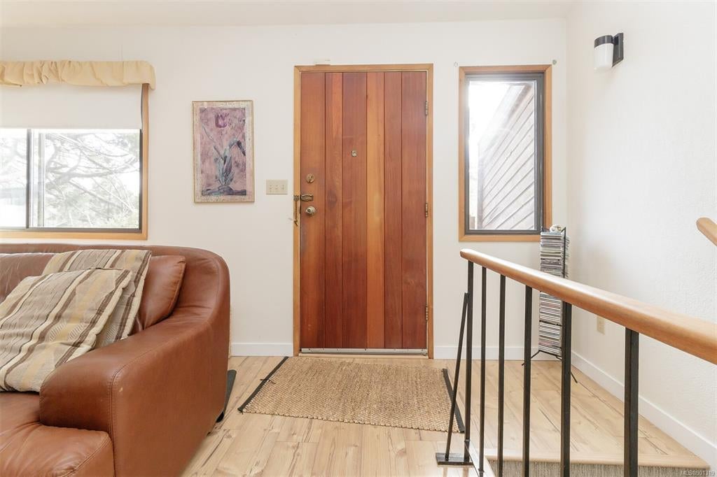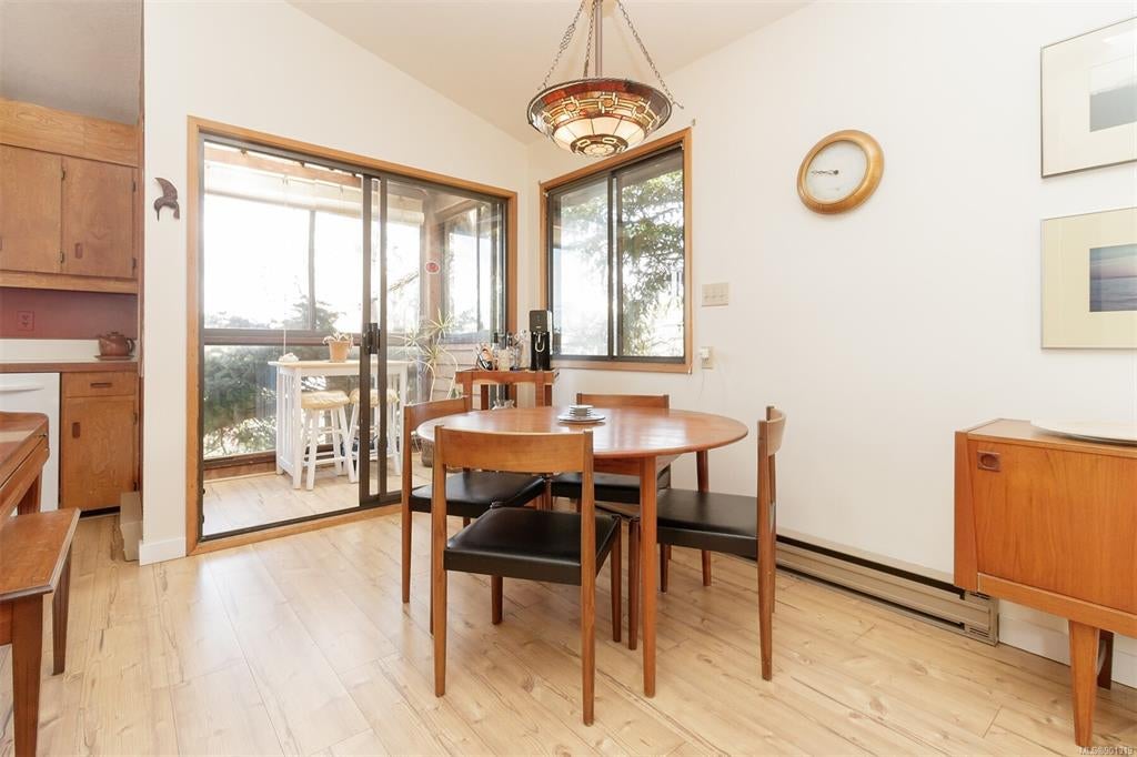 Fantastic ?Condo alternative, no strata fees, Ocean view from the kitchen window? and sunroom. ?This West Coast Side by side duplex featuring Skylights, vaulted ceiling and cosy fireplace in the living room. Very private high on a rock and on a dead end street. Bring your decorating ideas? to this 2 bed, 2 bath 1/2 duplex. Located on a quiet dead end street?,? walking distance to Saxe Point park, ocean?, ?Amenities? and bus routes?. Easy care lot, ?South West back yard ideal for a garden, ?covered carport, extra parking space and separate storage.