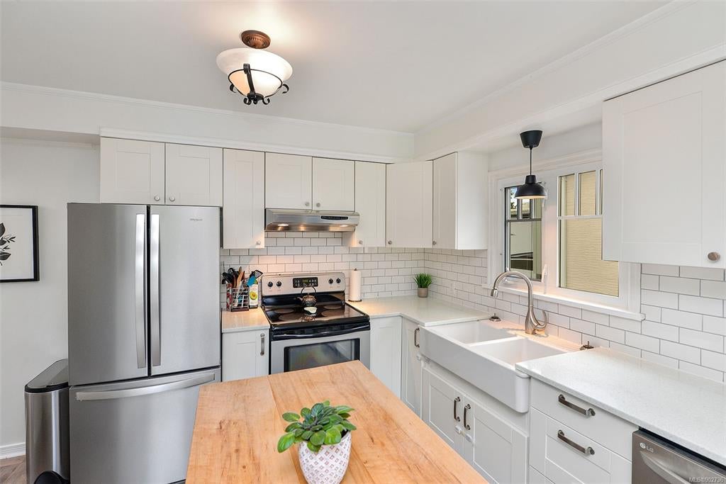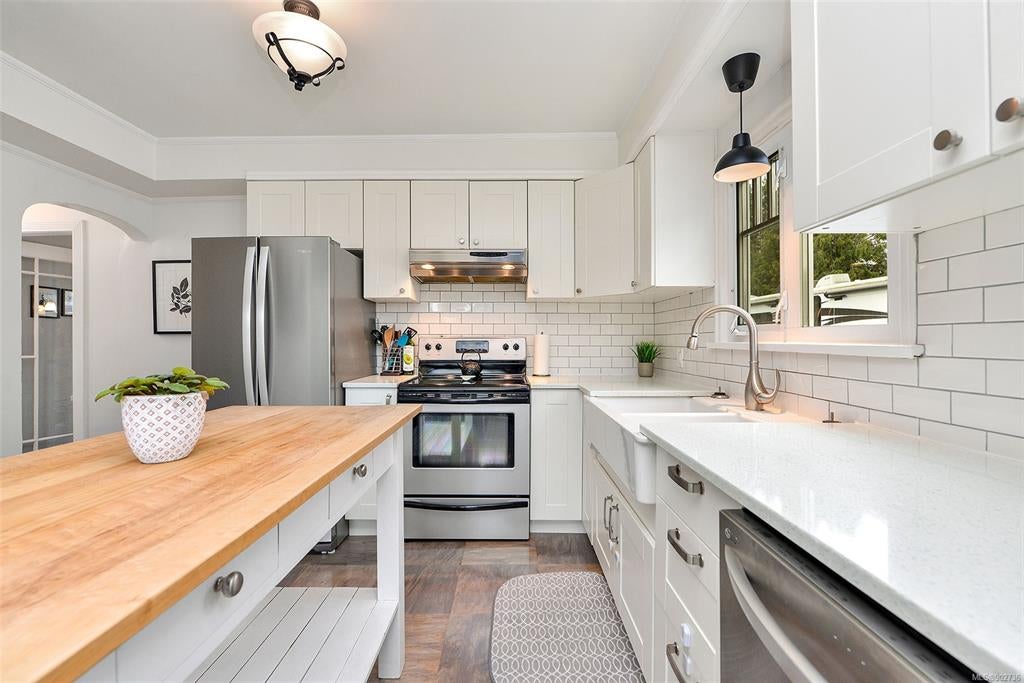 Don't miss out on this charming rancher, perfectly positioned on a fully-fenced, private, bright yard. This 2-bed, 1 bath home is an unmatched alternative to a strata - never worry about increasing fees or restrictive bylaws. The home offers 2 beds, 2 living spaces, one bath, modern kitchen, detached studio, and many updates. This well cared-for home also features a separate garage that includes additional living space, ideal for a home office or gym plus ample storage & workshop. Original hardwood floors with updates throughout, including thermopane windows, modern kitchen, newer appliances, and updated electrical. Location can't be beat - central proximity to everything you could possibly ask for. Find yourself seconds from grocery, dining, shopping, Uptown, schools, & the hwy creating an easy commute.